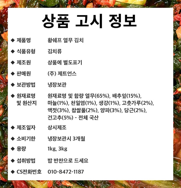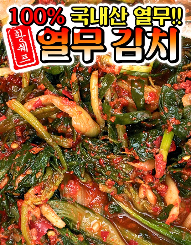 아삭아삭 시원한 황쉐프 열무김치 1달 동안간 최격가! 💚 100% 국내산 열무 & 18가지 재료와 비법 양념으로 만든 아삭하고 시원한 열무김치!